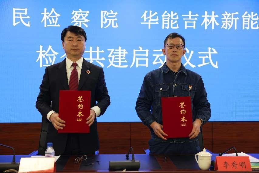 仪式上,洮南市人民检察院党组书记、检察长胥劲轶与华能新能源公司党委书记李秀明共同签署了《检企共建实施方案》。该方案明确了双方合作的目标、内容、方式及具体措施,旨在通过深化检企合作,共同营造公平正义的法治环境,为企业健康发展提供有力保障。