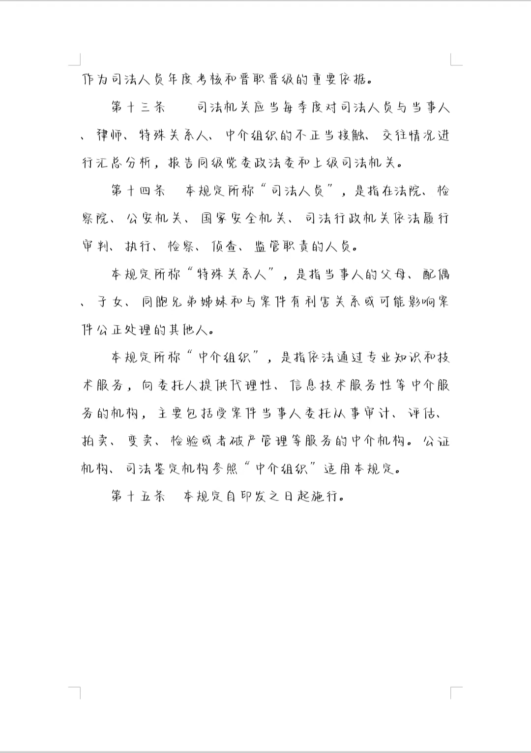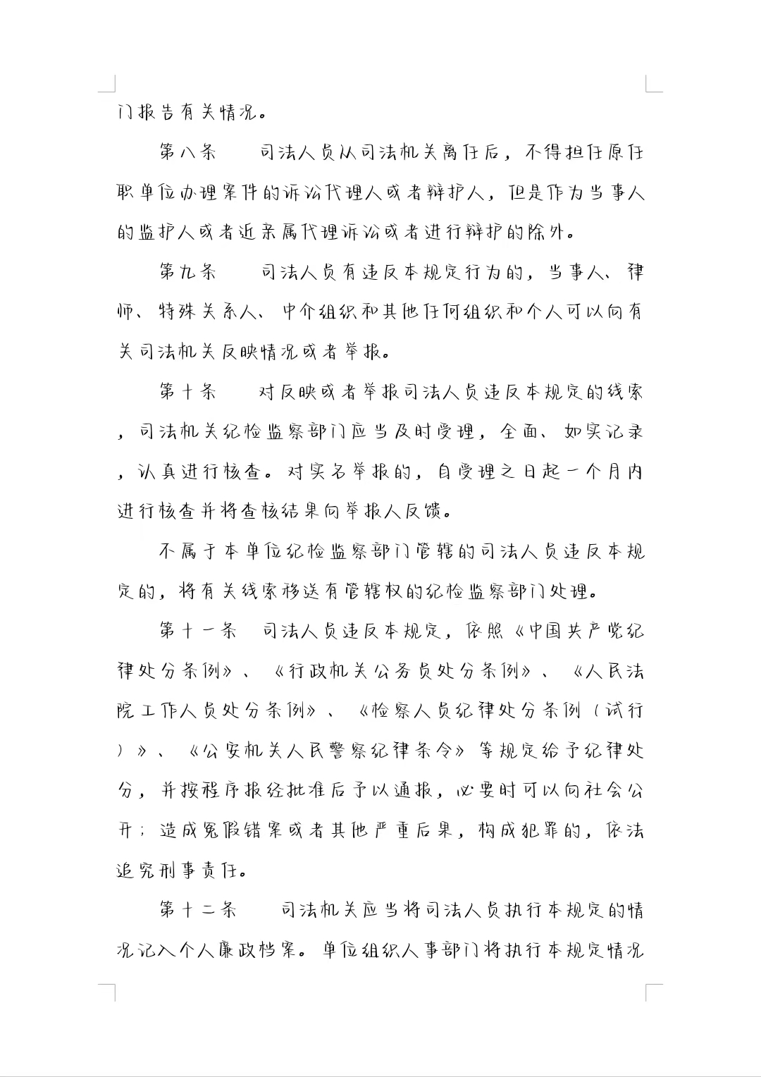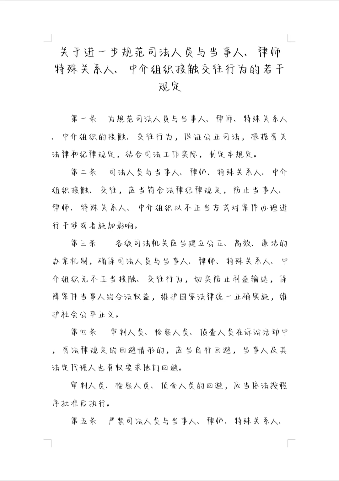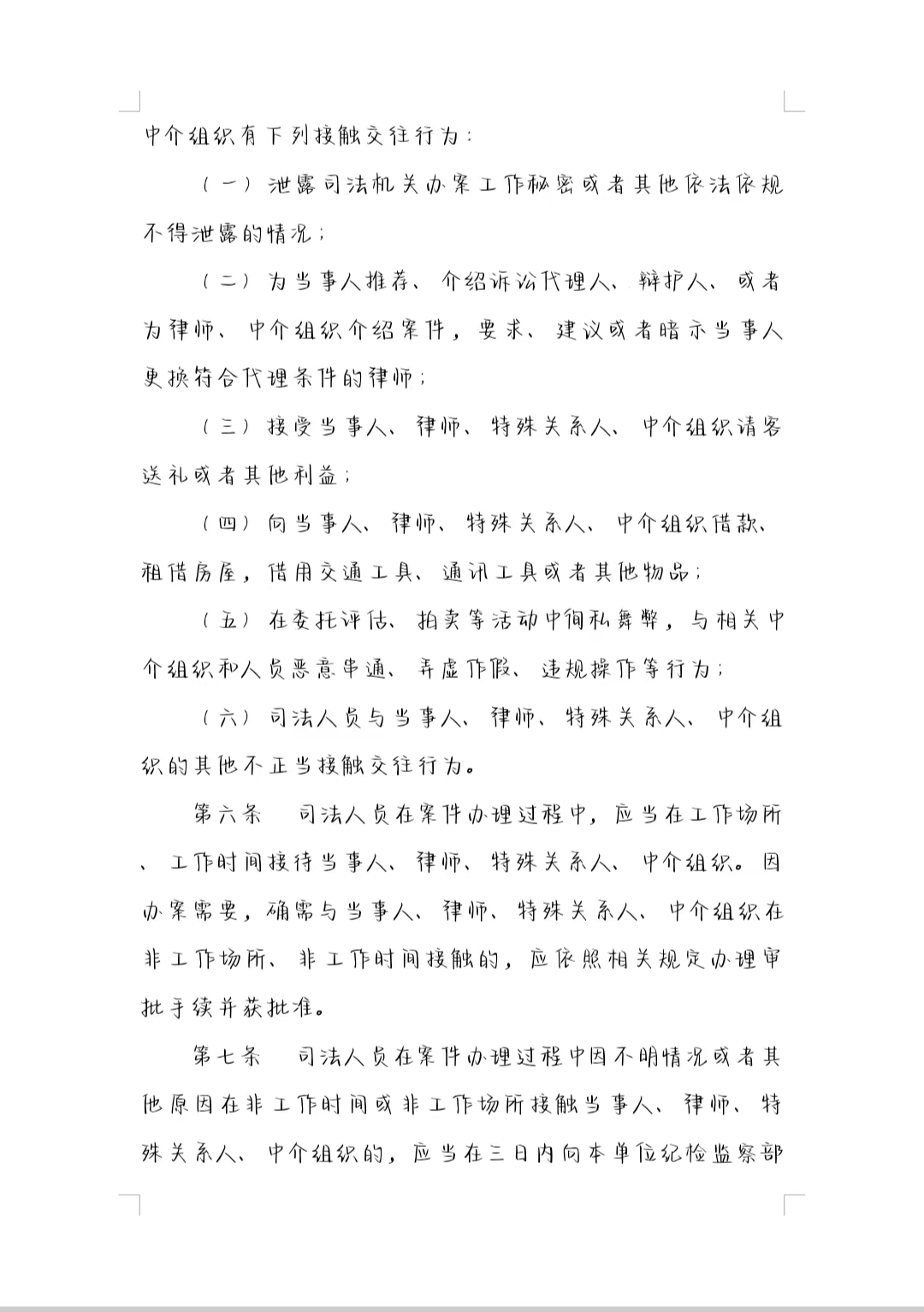 关于进一步规范司法人员与当事人、律师 特殊关系人、中介组织接触交往行为的若干规定